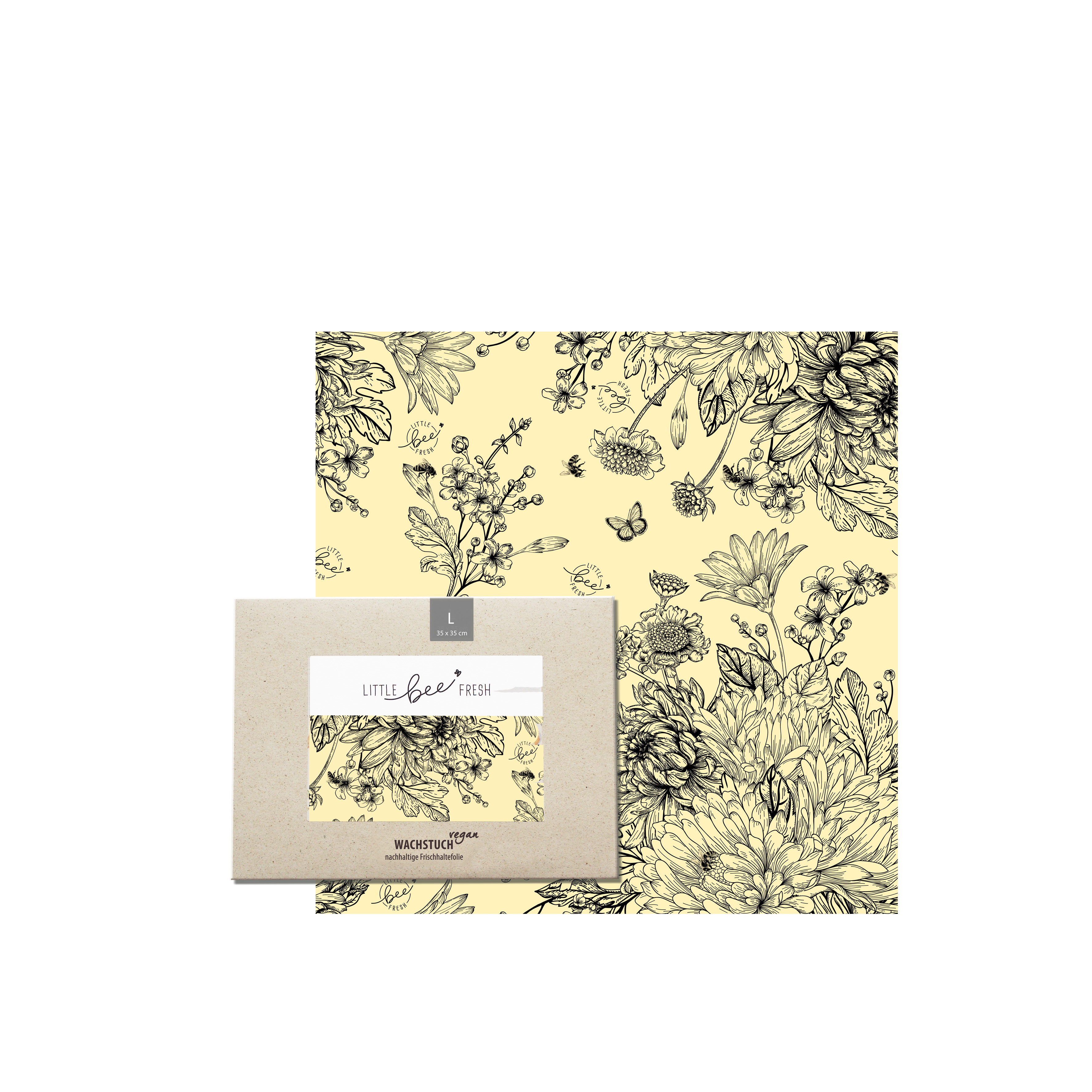 Bio-Bienenwachstuch "L" (35 x 35 cm) - Blumenwiese schwarz-weiß